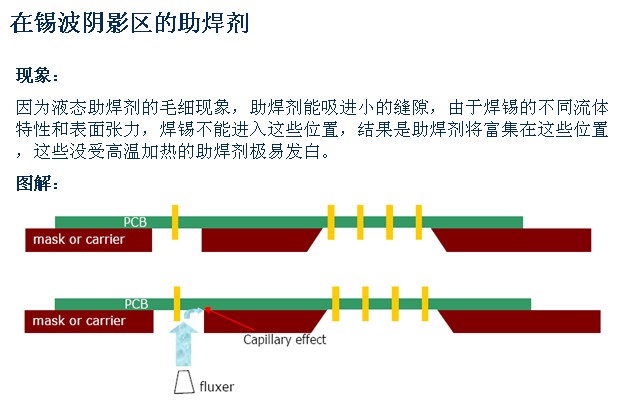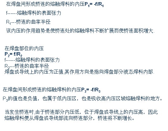 少的(de)被粘附在基體金(jīn)屬表面的液态銲(han)料一道前進,這正(zhèng)好構成了拉尖和(hé)橋連的必然條件(jian)。