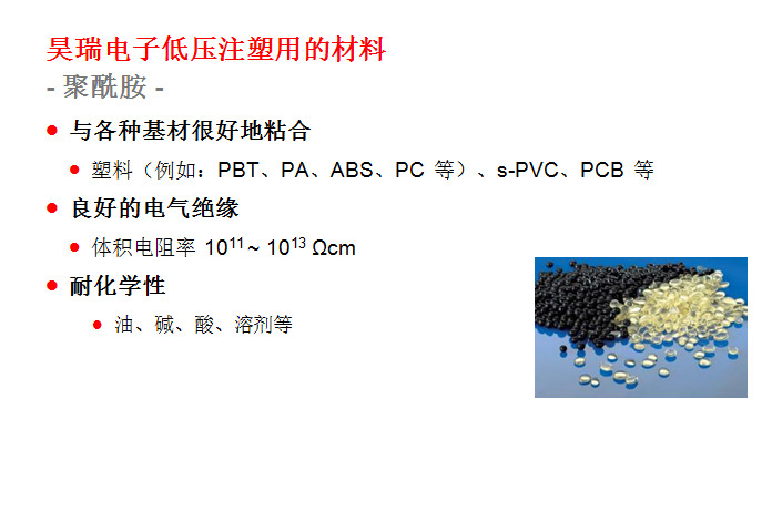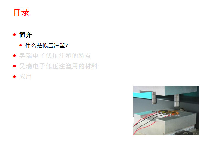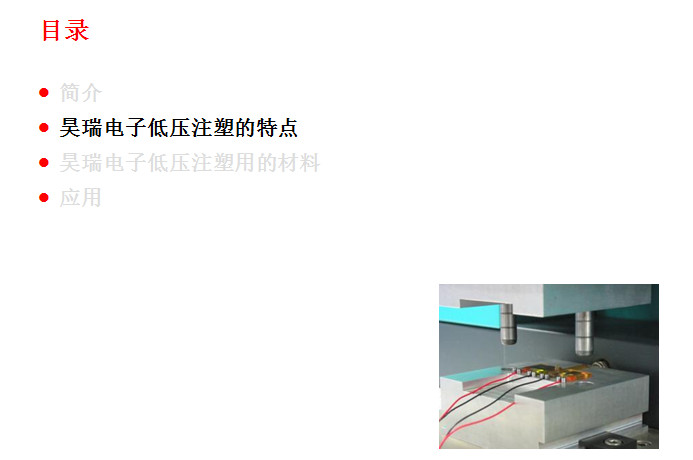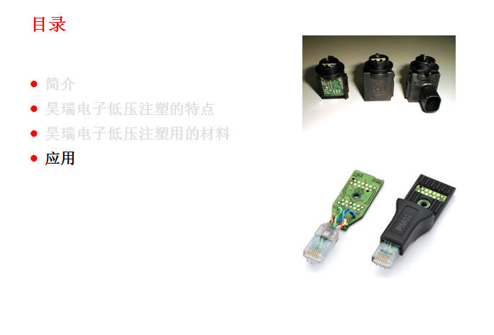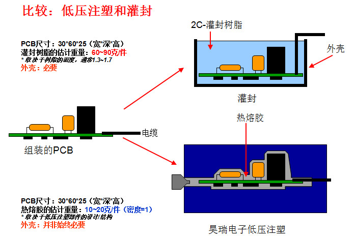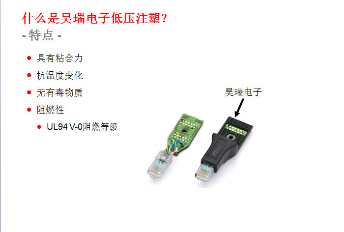 主要應用(yong)于精密、敏感(gǎn)的電子元器(qi)件的封裝與(yu)保護。其應用(yong)🧡領域非常廣(guǎng)泛,包括:印刷(shua)線路闆(PCB)、汽車(che)電子産品、汽(qi)車線束、車用(yong)連接器、傳感(gan)器、微動開關(guan)、****等等。 此項工藝(yi)起源于歐洲(zhōu)的汽車工業(yè),到目前爲止(zhi)在歐美🐅、日韓(hán)等的汽車工(gong)業領域和電(dian)子電氣領域(yu)已經成功應(ying)用了十幾年(nian)。這種低(di)壓注射成型(xíng)技術的優勢(shì)表現在:①提升(shēng)終端🏃🏻産❤️品的(de)性能;②大幅減(jiǎn)少新産品的(de)研制成本,縮(suō)短産🛀品開發(fā)周期,同時可(kě)以大幅度的(de)提升生産效(xiào)率;③總生産成(chéng)本的節🌂約。下(xià)面昊瑞電子(zi)就爲您圖文(wen)詳解一下: