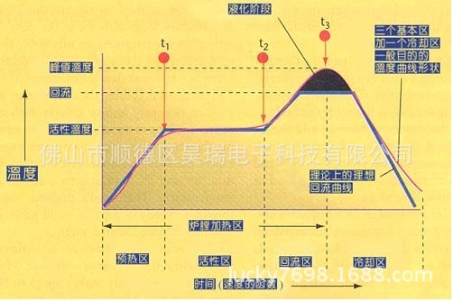 圖二、理論上(shàng)理想的回流曲線(xian)由四個區組成,前(qián)面三個😘區加🐕熱🤟、最(zui)後一個區冷卻)