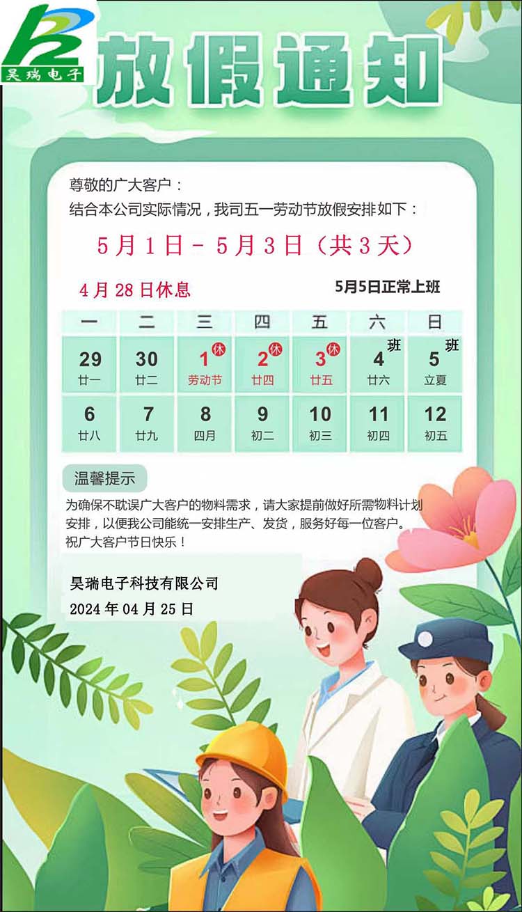 我司五一放(fang)假時間爲:5.01--5.03(共(gòng)3天)